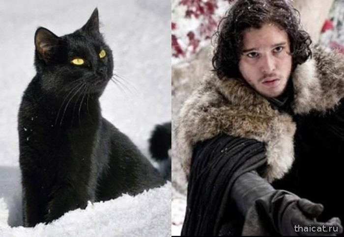 Очаровательный черный кот, рассмотрел в Джон Сноу своего двойника.